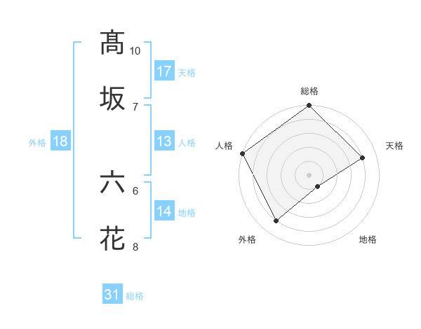髙坂 六花さんを姓名の画数から五運を鑑定