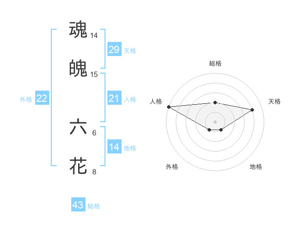 魂魄 六花さんの外格は22画の1点!