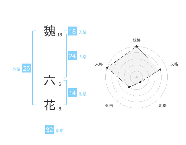 魏 六花さんの総格は32画の5点!
