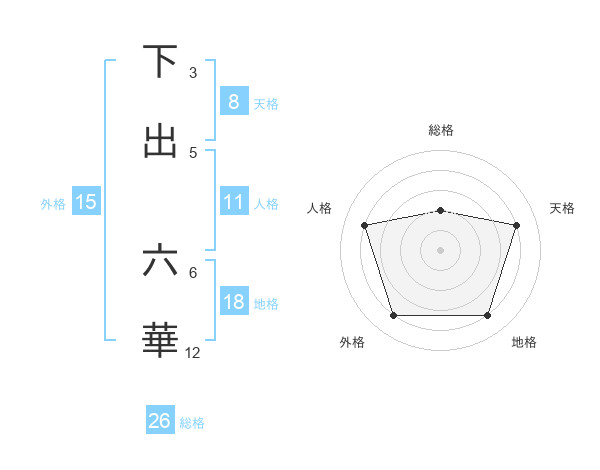 下出 六華さんの外格は15画の4点!