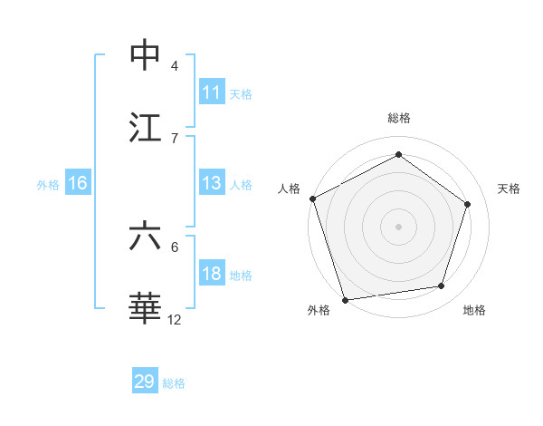 中江 六華さんの総格は29画の4点!