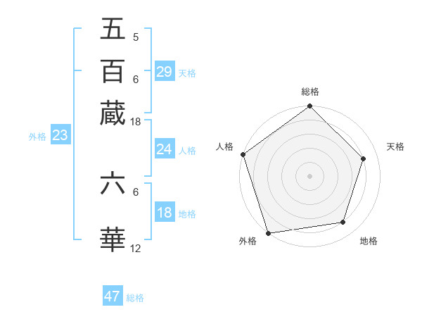 五百蔵 六華さんを姓名の画数から五運を鑑定