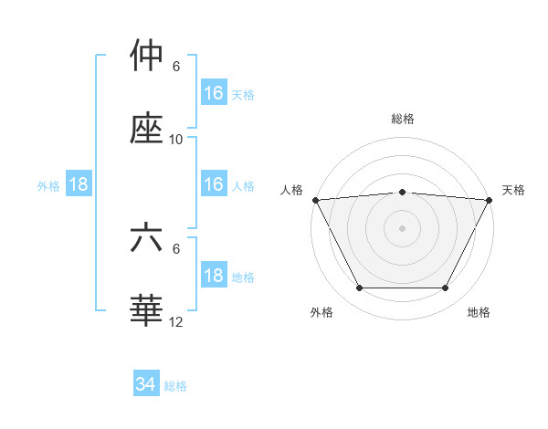 仲座 六華さんの天格は16画の5点!