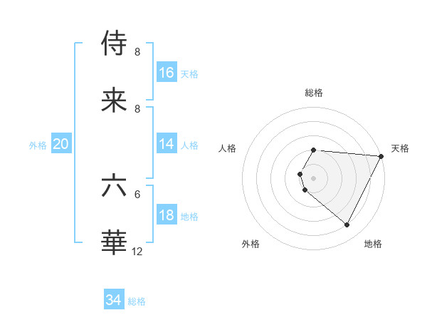 侍来 六華さんの天格は16画の5点!