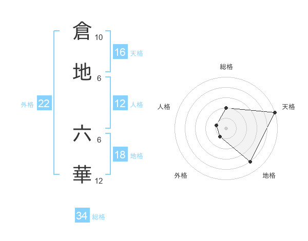 倉地 六華さんの総格は34画の2点!