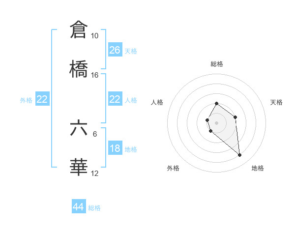 倉橋 六華さんを姓名の画数から五運を鑑定