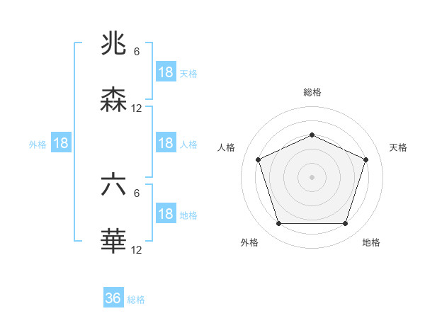 兆森 六華さんの外格は18画の4点!