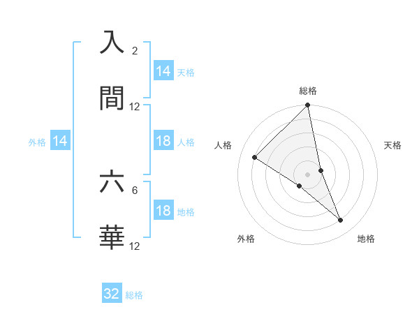 入間 六華さんの総格は32画の5点!