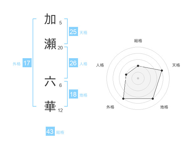 加瀬 六華さんの天格は25画の4点!
