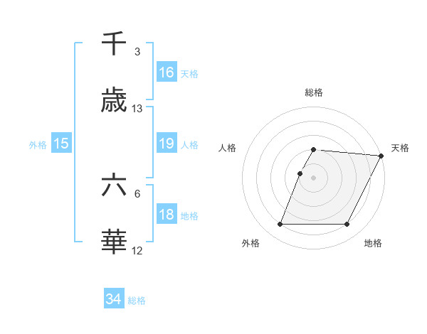 千歳 六華さんの総格は34画の2点!