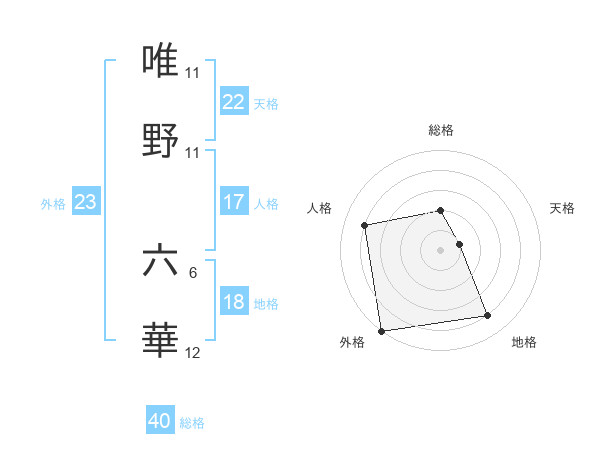唯野 六華さんの外格は23画の5点!