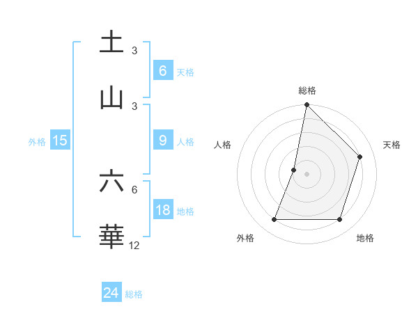 土山 六華さんの総格は24画の5点!