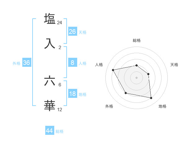 塩入 六華さんの外格は36画の3点!