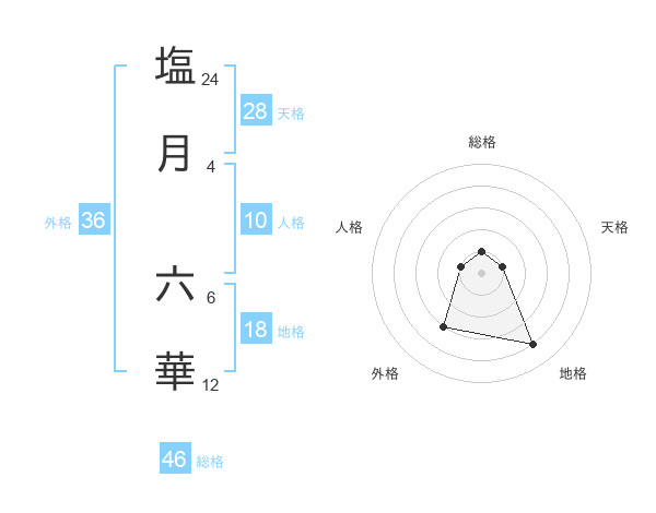 塩月 六華さんの外格は36画の3点!
