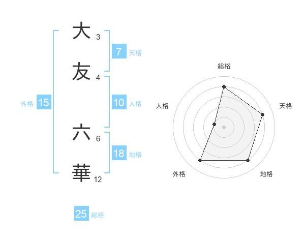 大友 六華さんの総格は25画の4点!