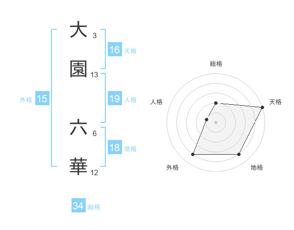 大園 六華さんの天格は16画の5点!