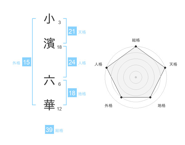 小濱 六華さんの天格は21画の5点!