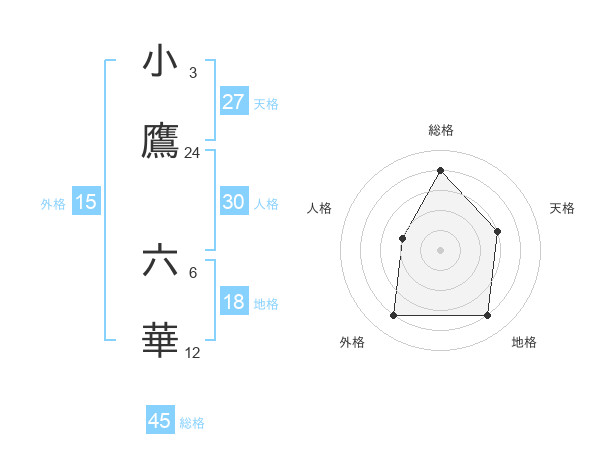 小鷹 六華さんの総格は45画の4点!