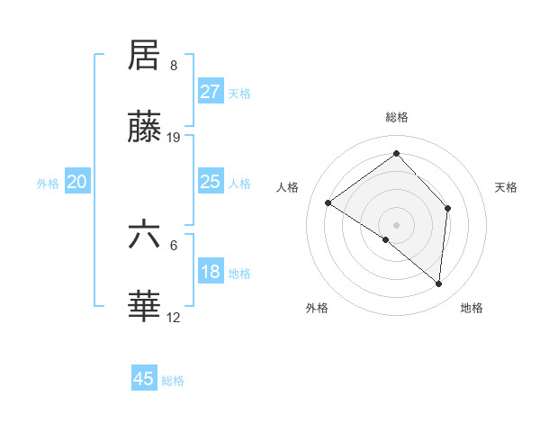 居藤 六華さんの総格は45画の4点!