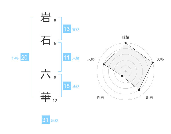 岩石 六華さんの総格は31画の5点!