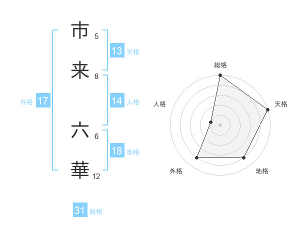 市来 六華さんの天格は13画の5点!