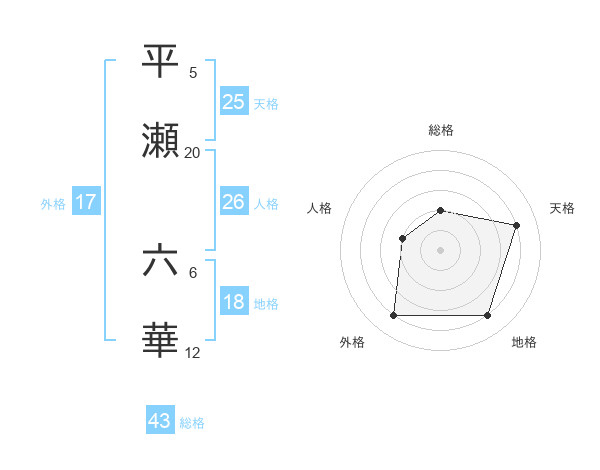 平瀬 六華さんの外格は17画の4点!