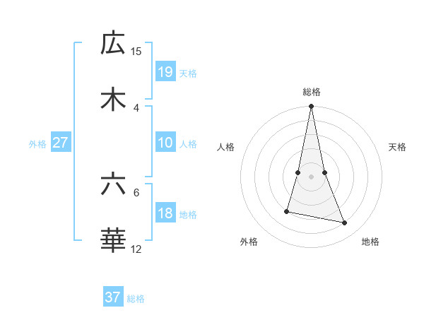 広木 六華さんの総格は37画の5点!