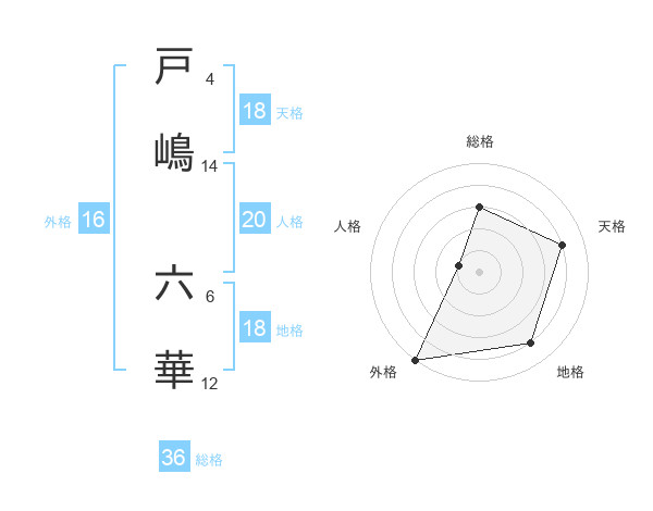 戸嶋 六華さんの外格は16画の5点!