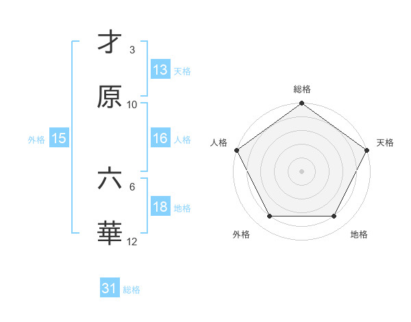 才原 六華さんの天格は13画の5点!