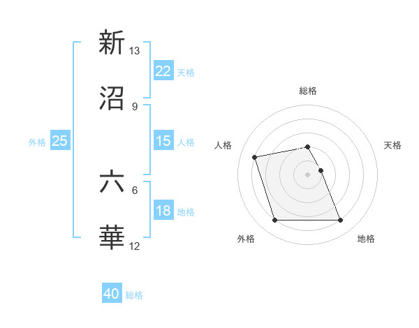 新沼 六華さんを姓名の画数から五運を鑑定