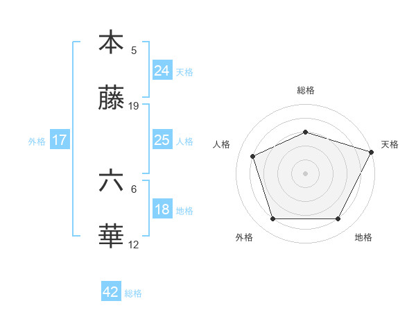 本藤 六華さんの天格は24画の5点!