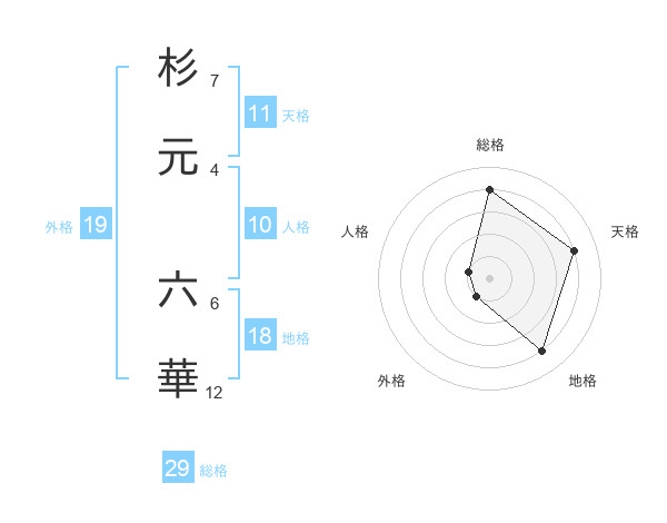 杉元 六華さんの総格は29画の4点!