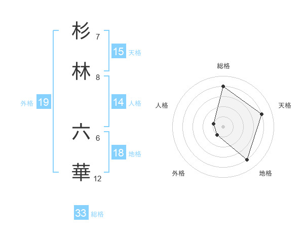杉林 六華さんの総格は33画の4点!