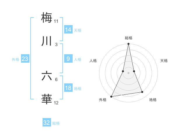 梅川 六華さんの総格は32画の5点!
