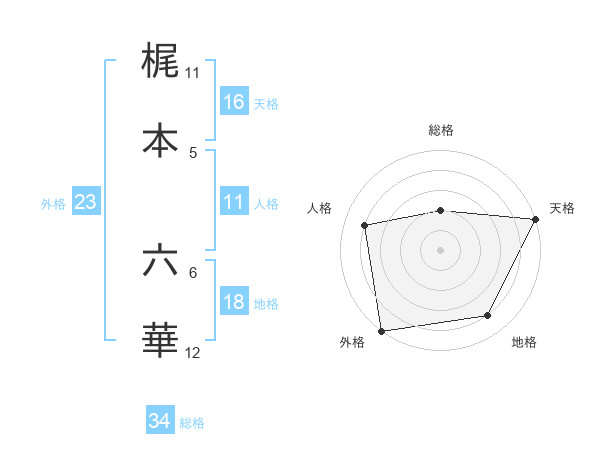 梶本 六華さんの外格は23画の5点!