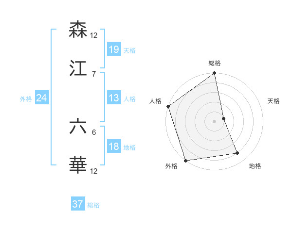 森江 六華さんの総格は37画の5点!