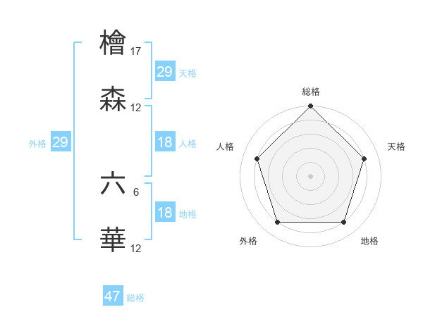 檜森 六華さんの総格は47画の5点!