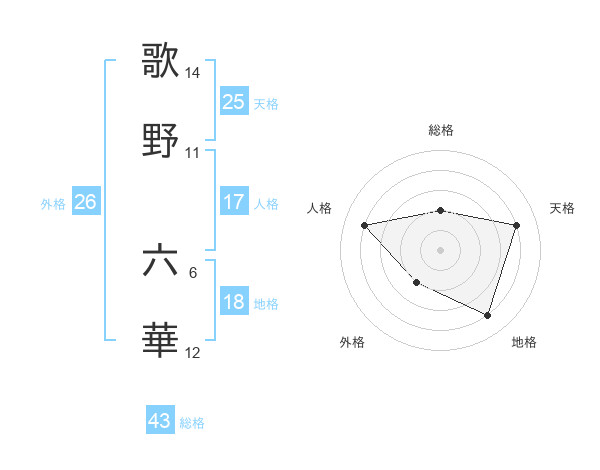 歌野 六華さんの天格は25画の4点!