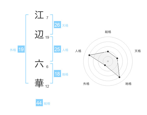 江辺 六華さんの外格は19画の1点!