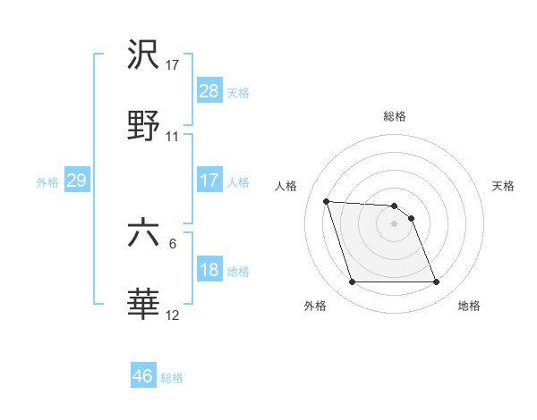 沢野 六華さんの天格は28画の1点!