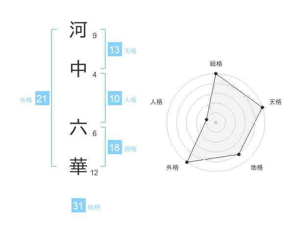 河中 六華さんを姓名の画数から五運を鑑定