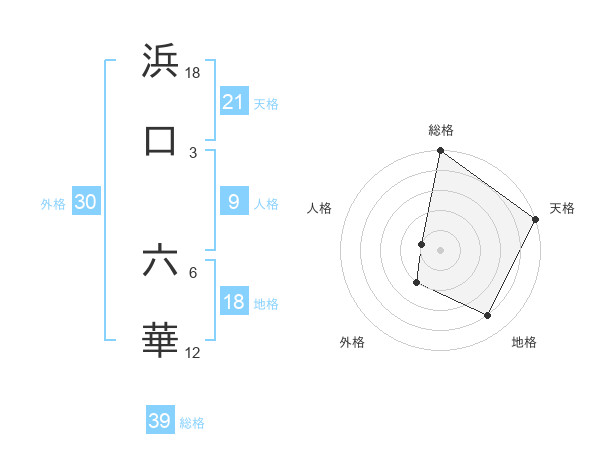 浜口 六華さんの総格は39画の5点!