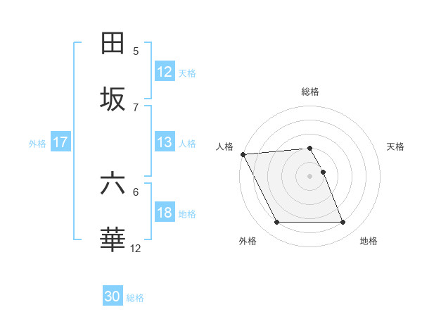 田坂 六華さんを姓名の画数から五運を鑑定