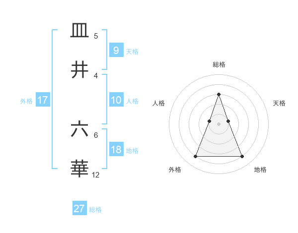 皿井 六華さんの総格は27画の3点!