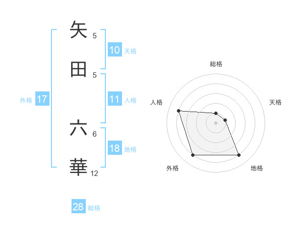 矢田 六華さんの総格は28画の1点!