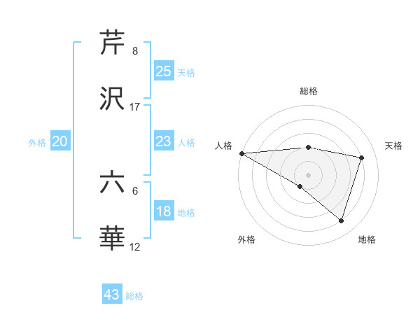 芹沢 六華さんの外格は20画の1点!