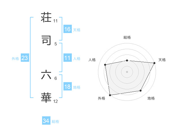 荘司 六華さんの外格は23画の5点!