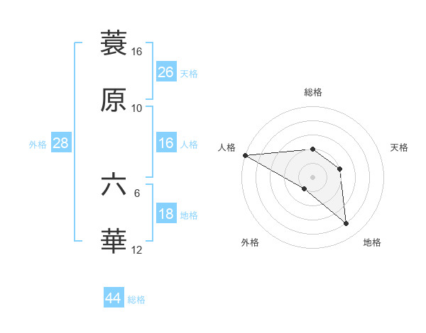 蓑原 六華さんの総格は44画の2点!