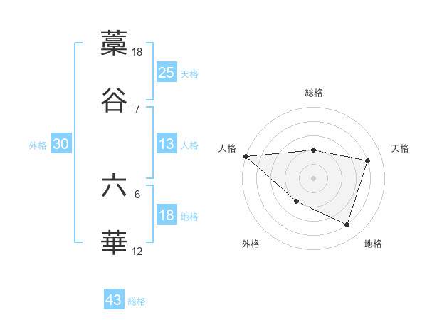 藁谷 六華さんの地格は18画の4点!