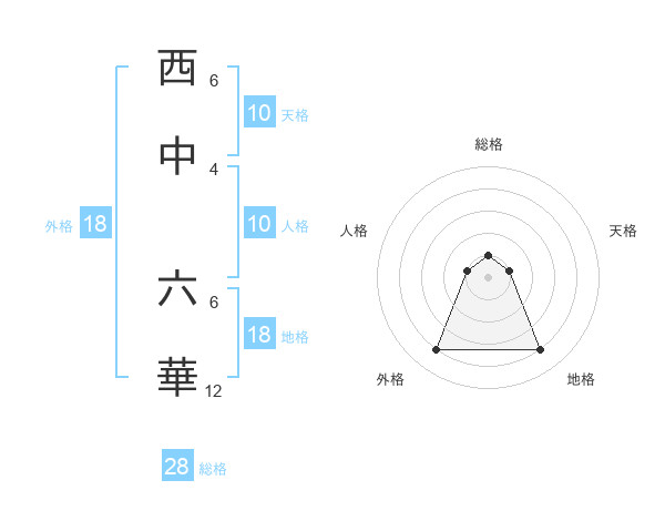 西中 六華さんの総格は28画の1点!
